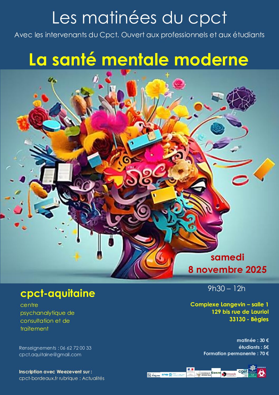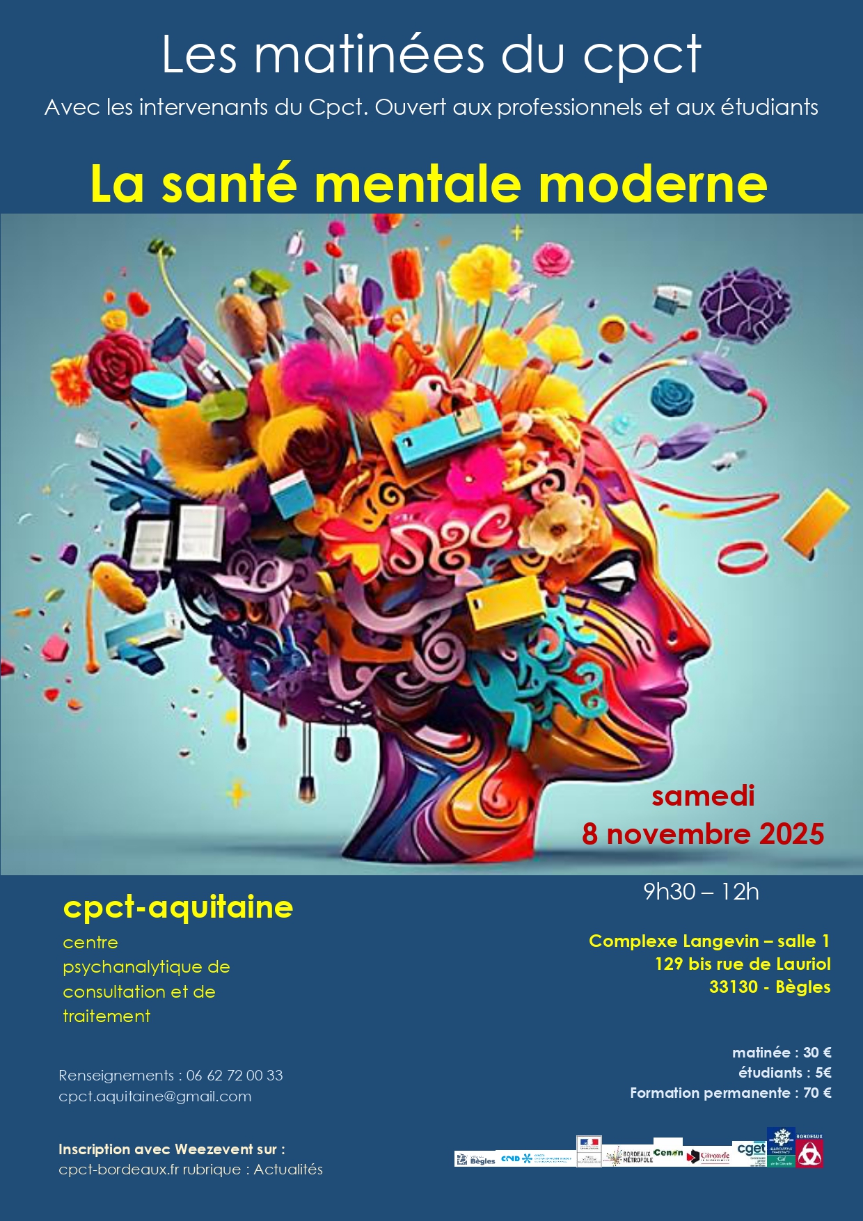 Avec Ariane Chottin, directrice de l’association ParADOxes, psychanalyste membre de l’ECF et de l’AMP. Et les intervenants du CPCT Aquitaine.